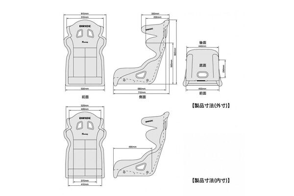 ※規格サイズ外のため、シートレールやブラケット等の専用部品はなく、装着に必要な部品は自己調達の必要がございます。